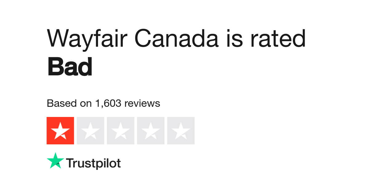 Wayfair ca has a consumer rating of 1.52 stars from 103 reviews indicating that most customers are generally dissatisfied with their purchases.